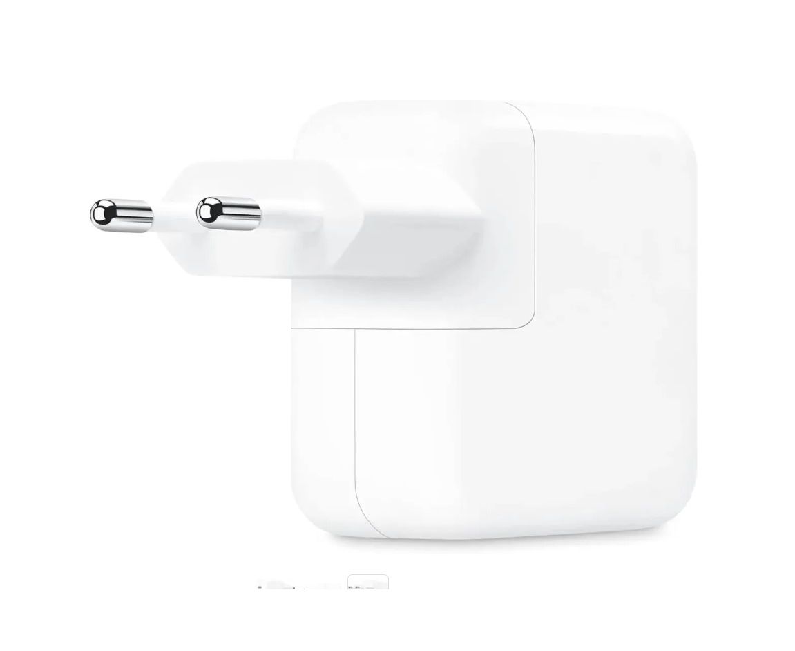 Адаптер питания с двумя портами USB-C мощностью 35 Вт позволяет одновременно заряжать два устройства.