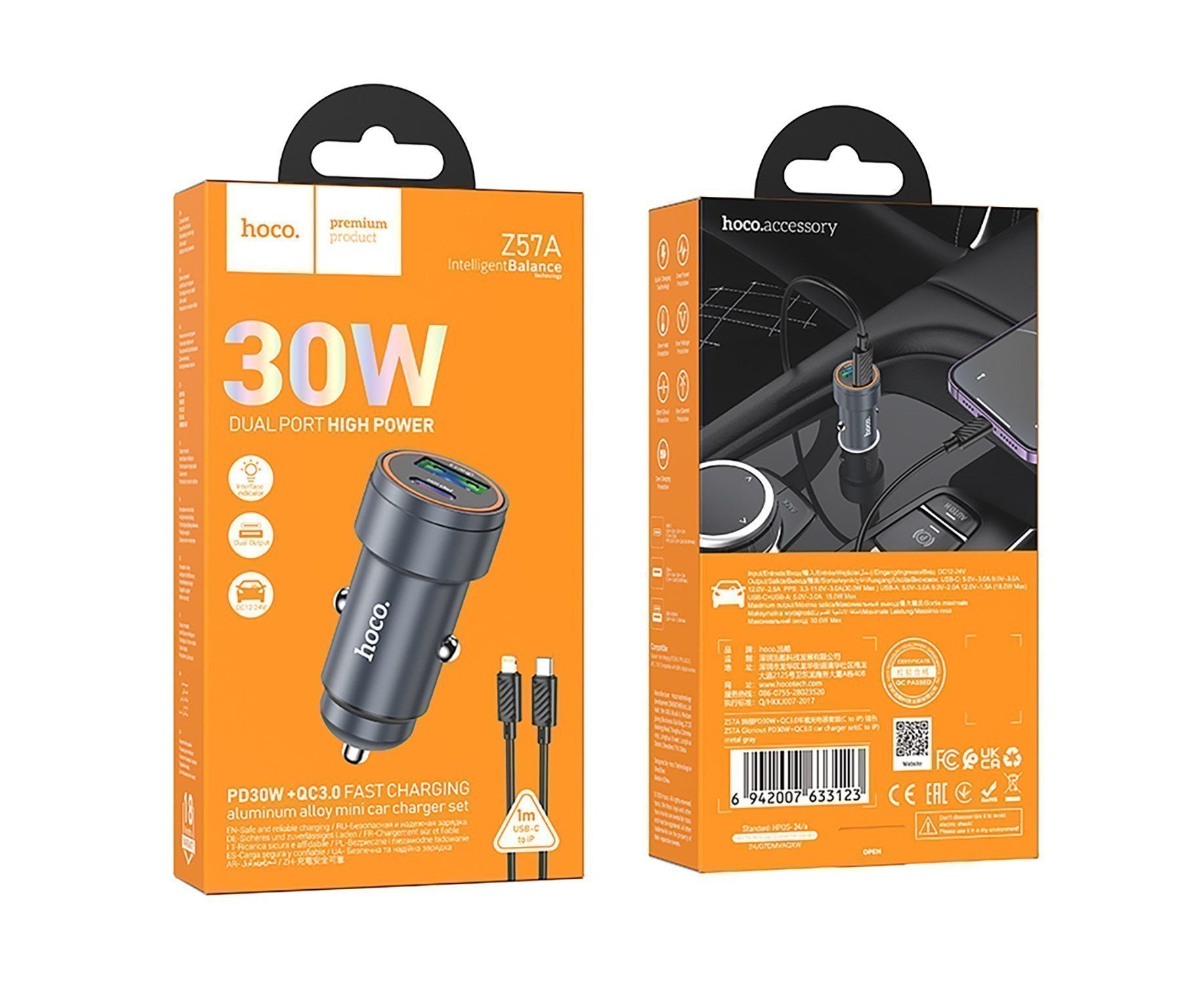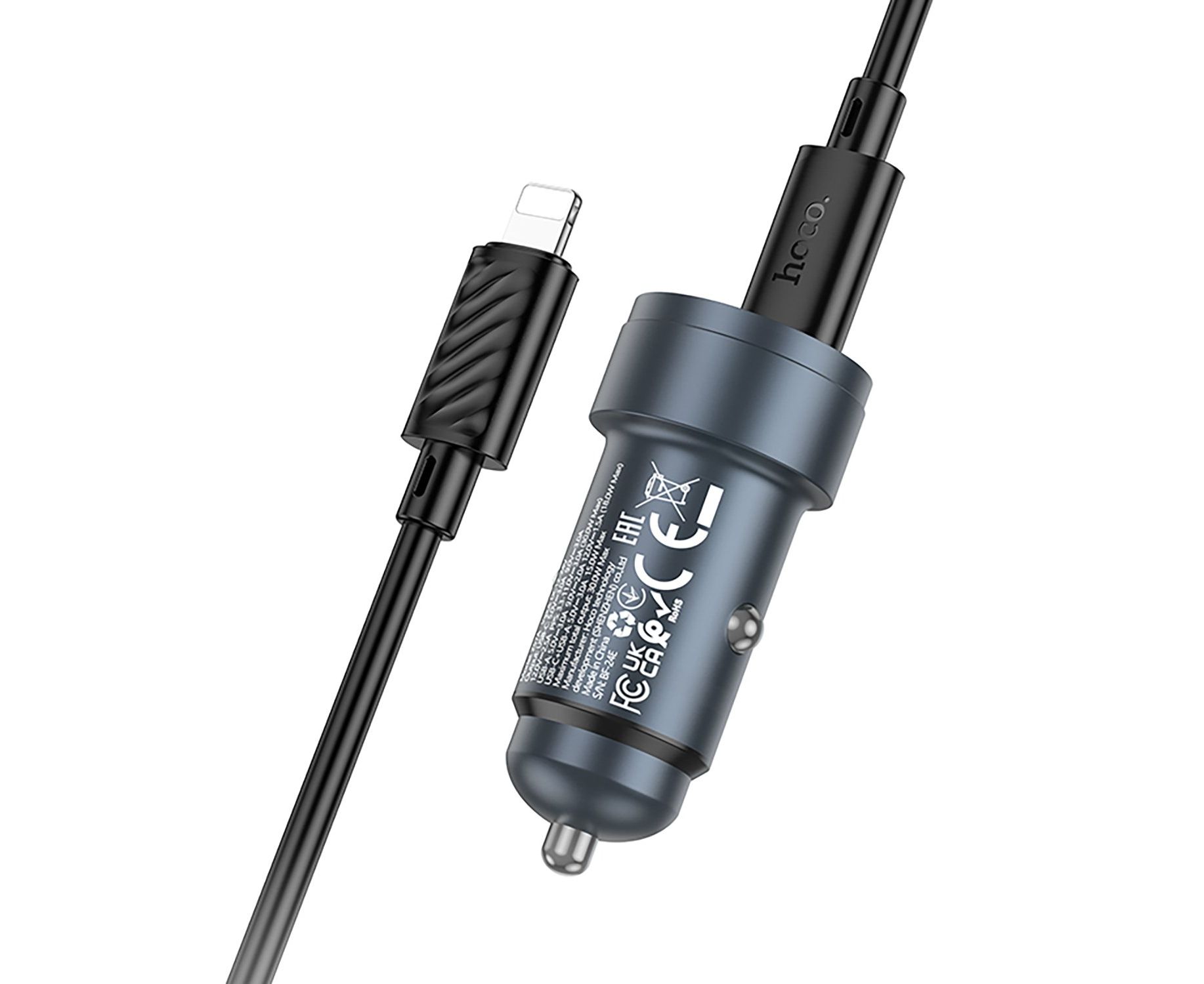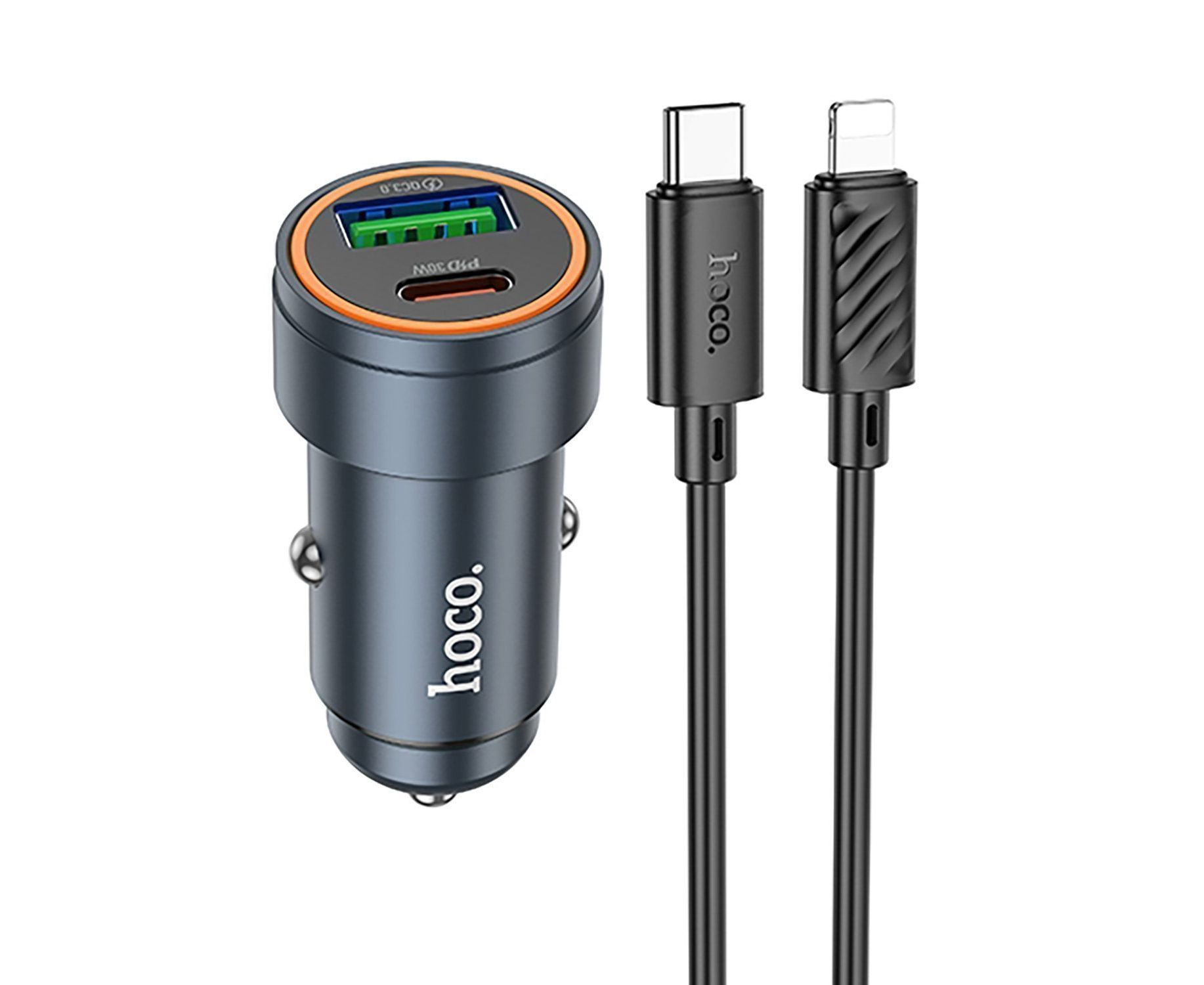 Адаптер Автомобильный с кабелем Hoco Z57A Glorious PD30W+QC3.0 (Type-C/Lightning) (metal gra(236198)