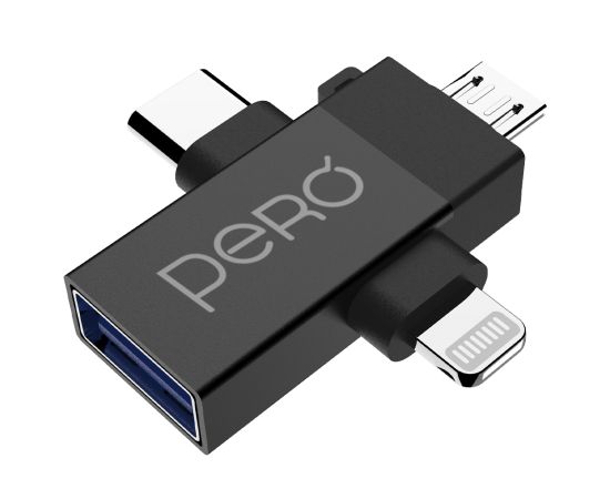 Адаптер PERO AD14 OTG LIGHTNING+USB-C+MICRO-USB TO USB 3.0, черный