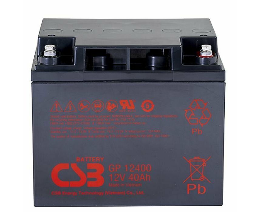 АКБ для ИБП 12В 40Ач CSB GP12400, 160W/cell, 480 Whr, 12.65 кг, (ШхГхВ) 197х165х170,4 мм (170,4 с клеммами)