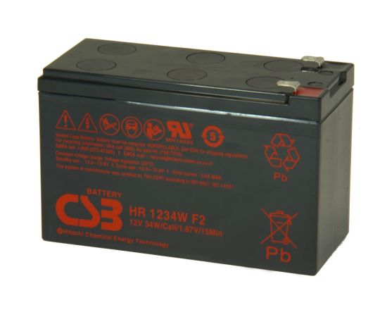 АКБ для ИБП 12В 9.0Ач CSB High Rate HR1234W F2, 34W/cell, 108 Whr, 2.5 кг, (ШхГхВ) 151х65х98 мм (102 с клеммами)