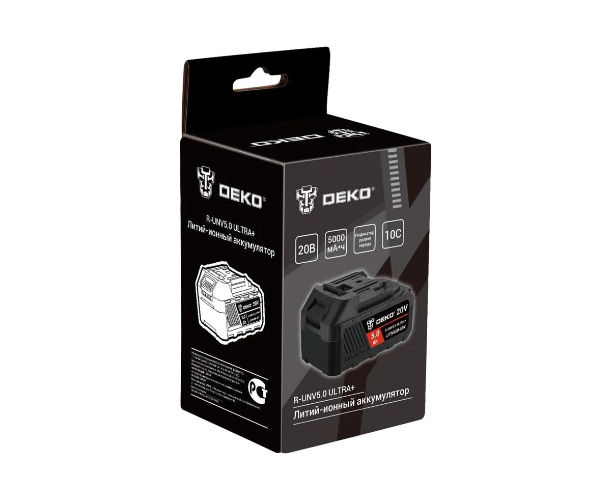 Аккумулятор DEKO R-UNV5.0 Ultra+ 083-1018 Li-ion, 20В, 5.0А*ч, с повышенной токоотдачей