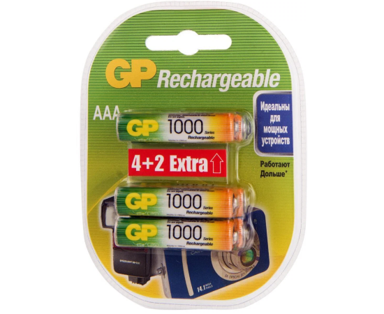 Аккумулятор GP Rechargeable 100AAAHC4 (100AAAHC4/2-2CR6 36/360) AAA, 1.2V 1 А·ч, 6 шт.
