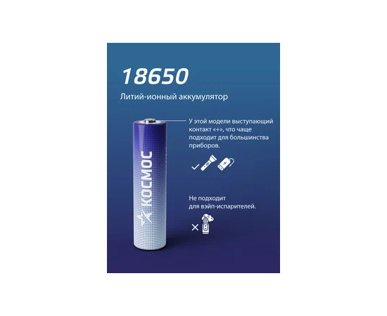 Аккумулятор Космос 18650 Li-ion 1500mAh KOC18650Li-ion15UBL1 без защиты, 1шт блистер