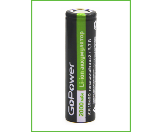 Аккумулятор Li-ion GoPower ICR18650 PC1 3.7V 2000mAh без защиты плос.конт. (1/80/160)
