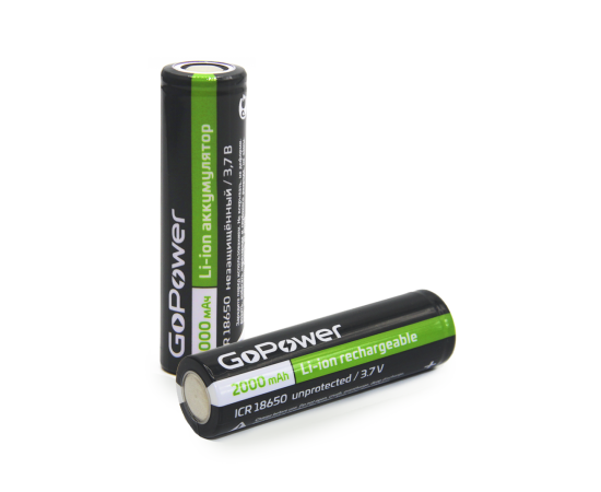 Литий-ионный (Li-ion) аккумулятор GoPower размера 18650. Зарядите перед использованием.