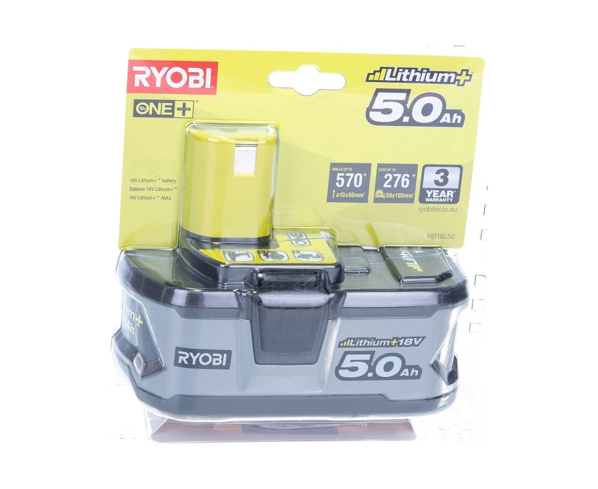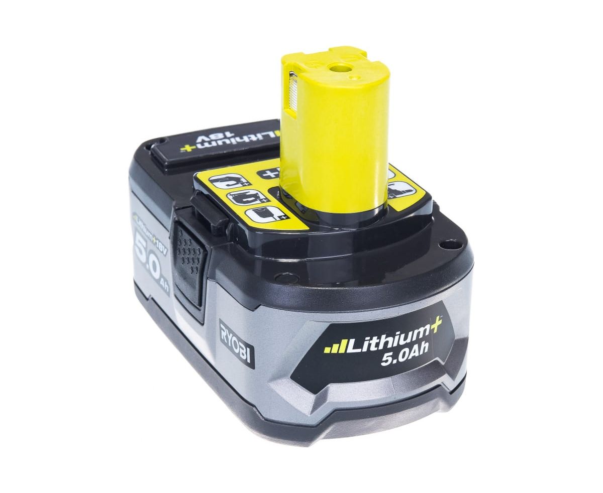 Аккумулятор Ryobi ONE+ RB18L50 5133002433 (18 В; 5 А*ч; Li-Ion) с индикатором заряда. Подходит к электроинструменту Ryobi серии ONE+.
