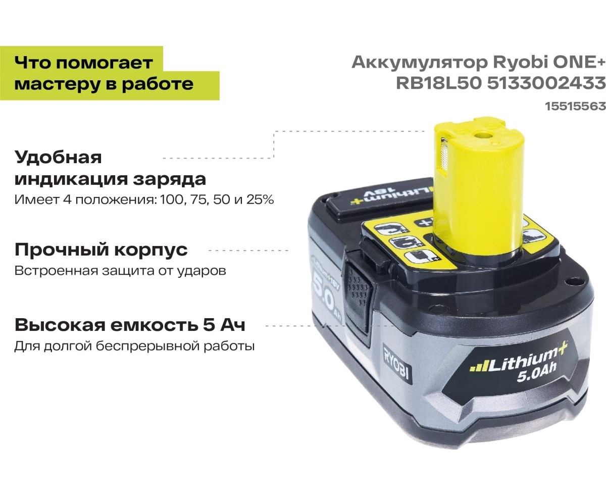 Преимущества Ryobi ONE+ RB18L50 5133002433
