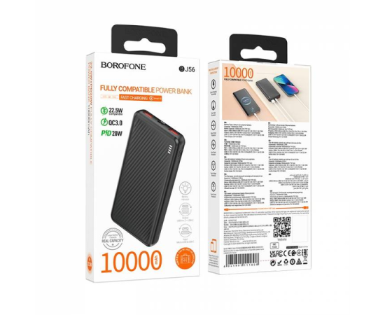 Аккумулятор внешний резервный BOROFONE BJ56 Graceful 22.5W+PD20W 10000mAh (чёрный)