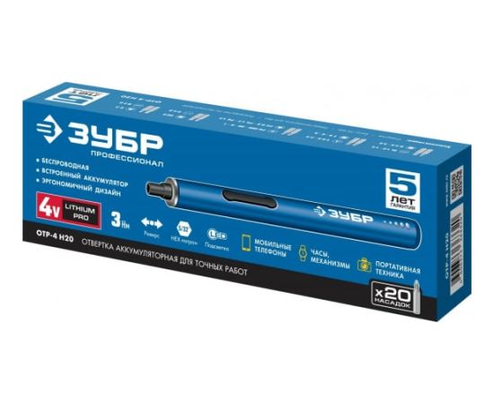 Аккумуляторная отвертка Зубр Профессионал ОТР-4 Н20 4 Vmax для точных работ, с набором 20 бит встроенный акк