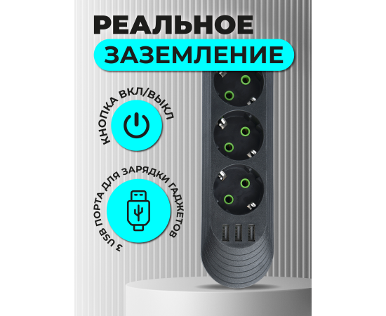 Предлагаем Вам приобрести незаменимый и полезный предмет в любом доме – удлинитель. Он обеспечивает удобство использования электроприборами. Благодаря 3 розеткам Вы можете подключить три электроприбора в сетевой фильтр и использовать их одновременно. Максимальная суммарная мощность подключаемых устройств не должна превышать 2,5кВт. Это достаточно для подключения различных устройств, таких как компьютеры, мониторы, зарядные устройства и другие электроприборы. Встроенные USB-порты позволяют заряжать и подключать мобильные устройства, планшеты, наушники и другие гаджеты без необходимости использовать дополнительные блоки питания (зарядные устройства) Стильный, современный дизайн фильтра обеспечивает удобство использования и экономию пространства. У удлинителя есть отверстия для крепления на стену как в вертикальном, так и в горизонтальном положении. Длина провода 2 метра. Мощность 2500Вт. Корпус выполнен из огнестойкого поликарбоната. Индикатор питания встроен в кнопку включения питания. Максимальный допустимый ток 10 А.