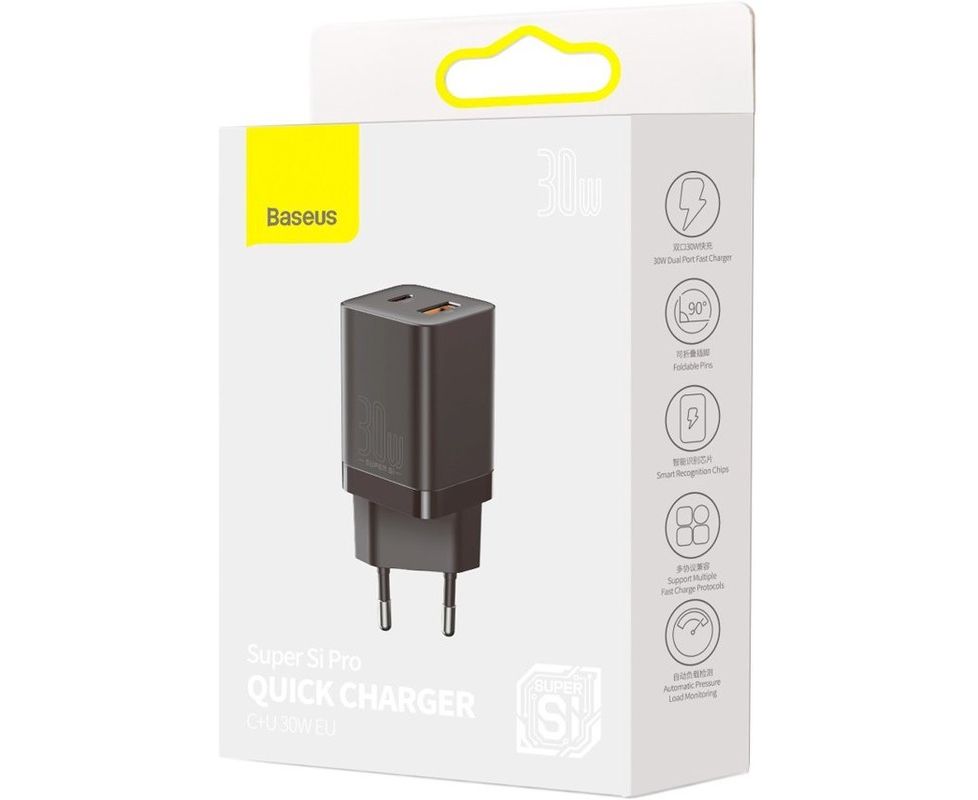 АП сетевой Baseus CCSUPP-E01 30W, 3.0А, 1 USB/1 Type-C, пластик, черный