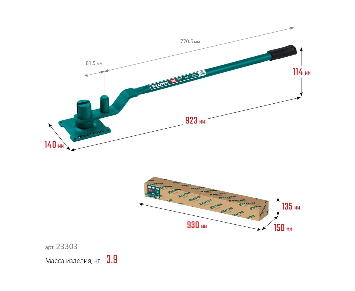 Арматурогиб ручной KRAFTOOL 12 E (23303) на подшипнике, острый гиб