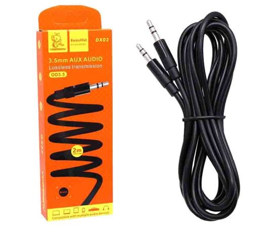 Аудио-кабель, Denmen DX02, 3.5 мм, силикон, разъем-пластик, 2.0 м, круглый, белый, фирменная упаковка