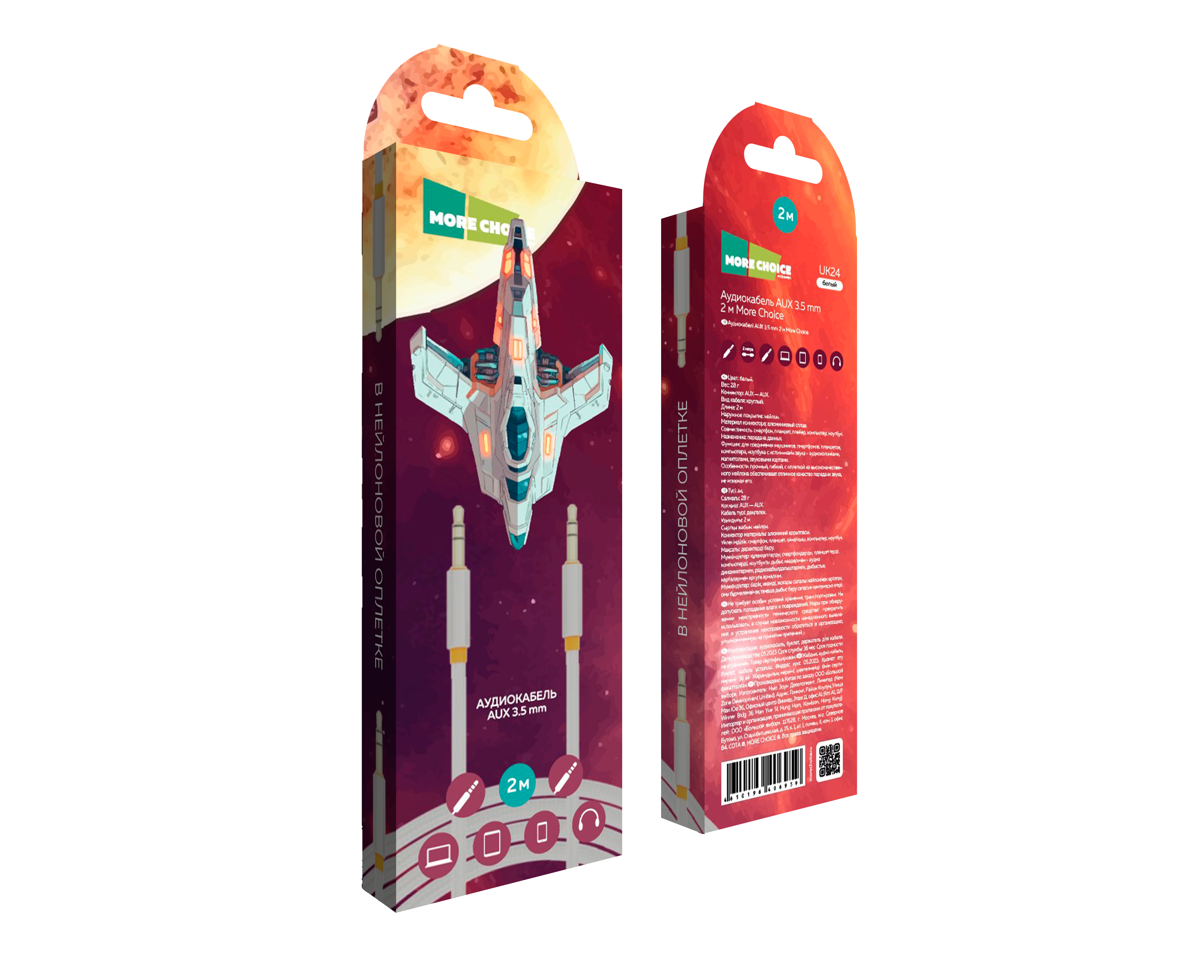 Аудиокабель AUX 3.5mm 2м More choice UK24 нейлон