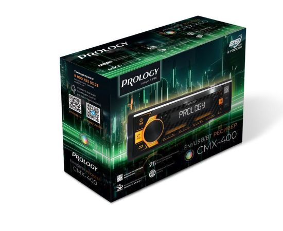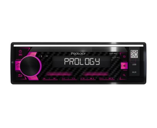 PROLOGY CMX-400 — FM/USB-ресивер с Bluetooth®, поддерживающий все популярные аудиоформаты, включая MP3, WAV и FLAC, оснащается 20-полосным эквалайзером, обеспечивающим более тонкую настройку звука. Цифровой PLL-тюнер FM-диапазона дает возможность сохранить в памяти до 18 станций. Шесть выходов RCA позволяют построить в автомобиле полноценную аудиосистему с внешними усилителями и сабвуфером. Автомагнитола имеет стандартный типоразмер 1DIN, минимальную установочную глубину 100 мм и оснащена разъемом ISO. CMX-400 поддерживает функцию многоцветной двухзонной подсветки (MULTICOLOR) для клавиш управления и индикаторного дисплея. Пользователь может выбрать один из девяти цветов для каждой зоны (дисплей / кнопки управления) или настроить собственный при помощи приложения на смартфоне. Ресивером можно управлять при помощи мобильного приложения Prology Audio*, установленного на смартфон с операционной системой Android или iOS.