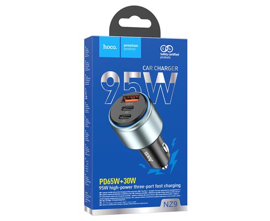Автомобильное зарядное устройство HOCO NZ9 Galloper, 1xUSB + 2xUSB-C, 95W, черный