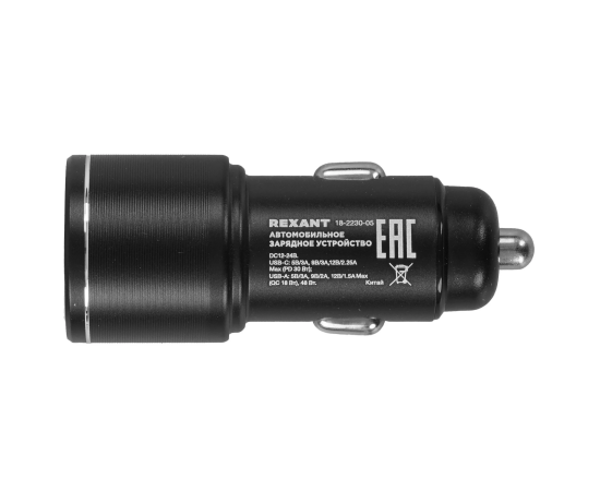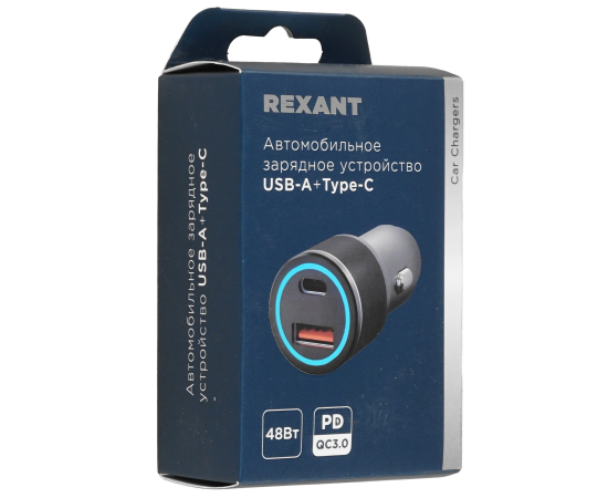 Автомобильное зарядное устройство Rexant 18-2230-5 c двумя портами USB-C + USB-A c LED-подсветкой, 48Вт