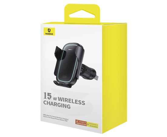 Автомобильный держатель BASEUS Milky Way Pro Wireless Charging, зажимной с беспроводной зарядкой, 15W, на воздуховод, черный