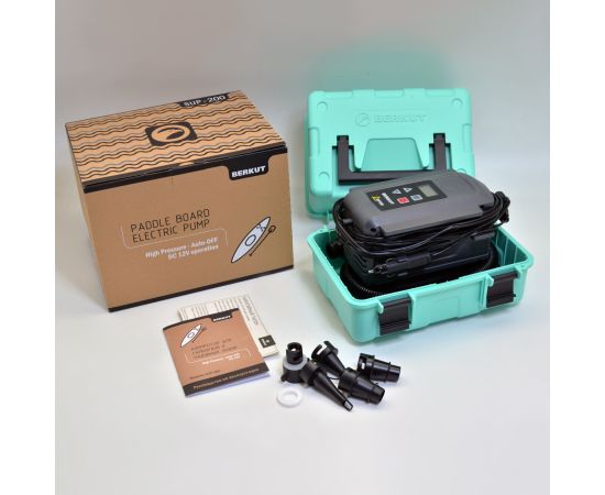 BERKUT SUP-200 предназначен для накачивания сапбордов, надувных лодок, каяков, байдарок, палаток, матрасов и т.п. Высокоэффективный двухпоршневой компрессор SUP-200 обеспечивает производительность до 180 л/мин (средняя скорость накачки Сапборда — 8-9 минут). Максимальное рабочее давление 20PSI (1,38bar) позволяет накачивать жесткие спортивные сапборды профессиональной серии. Удобное цифровое управление и манометр с функцией АВТОСТОП позволяет точно накачивать оборудование до выбранного давления. Эргономичный дизайн и интеграция в ударопрочный кейс со специальной ручкой для переноски позволяет не тратить длительное время на разворачивание системы. Набор различных насадок 5 шт. для накачивания различных надувных изделий (Сапы, лодки, каяки, палатки, матрасы и т.п.). Компрессор работает от бортовой розетки 12V и потребляет не более 12-13A (Допускается подключение к ПЗУ BERKUT серии JSL и PSL)