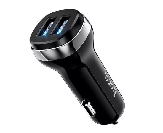 Автомобильное зарядное устройство Hoco Z40 с двумя USB портами, с подсветкой. Материал изготовление данного товара ABC пластик + PC огнеупорный, что не дает нагреться, перегреться. Оснащен LED индикатором синего света..