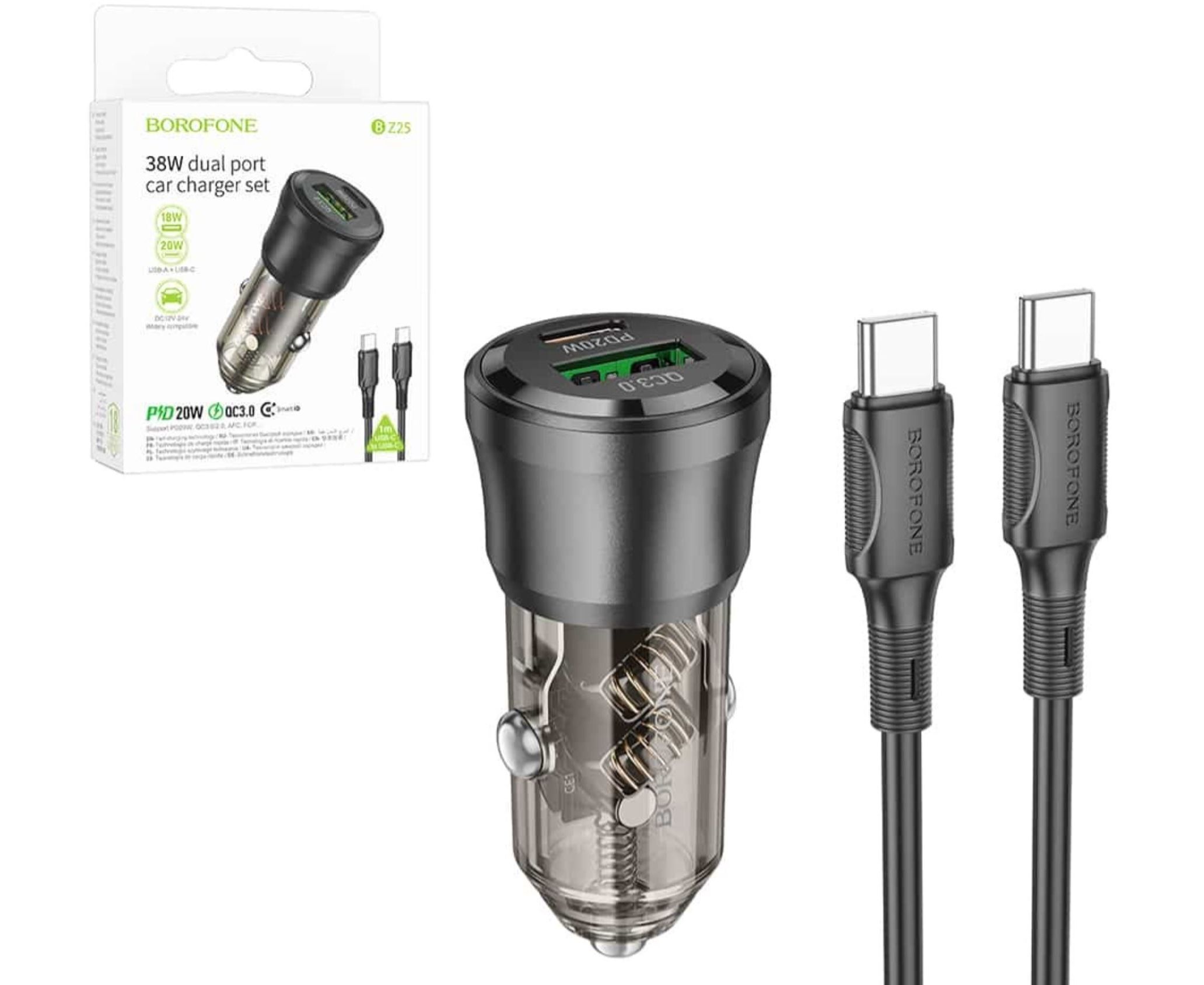 АЗУ BOROFONE BZ25 Journey PD 38W 2 USB A+C cabel Type-C to Type-C (прозрачный-черный)