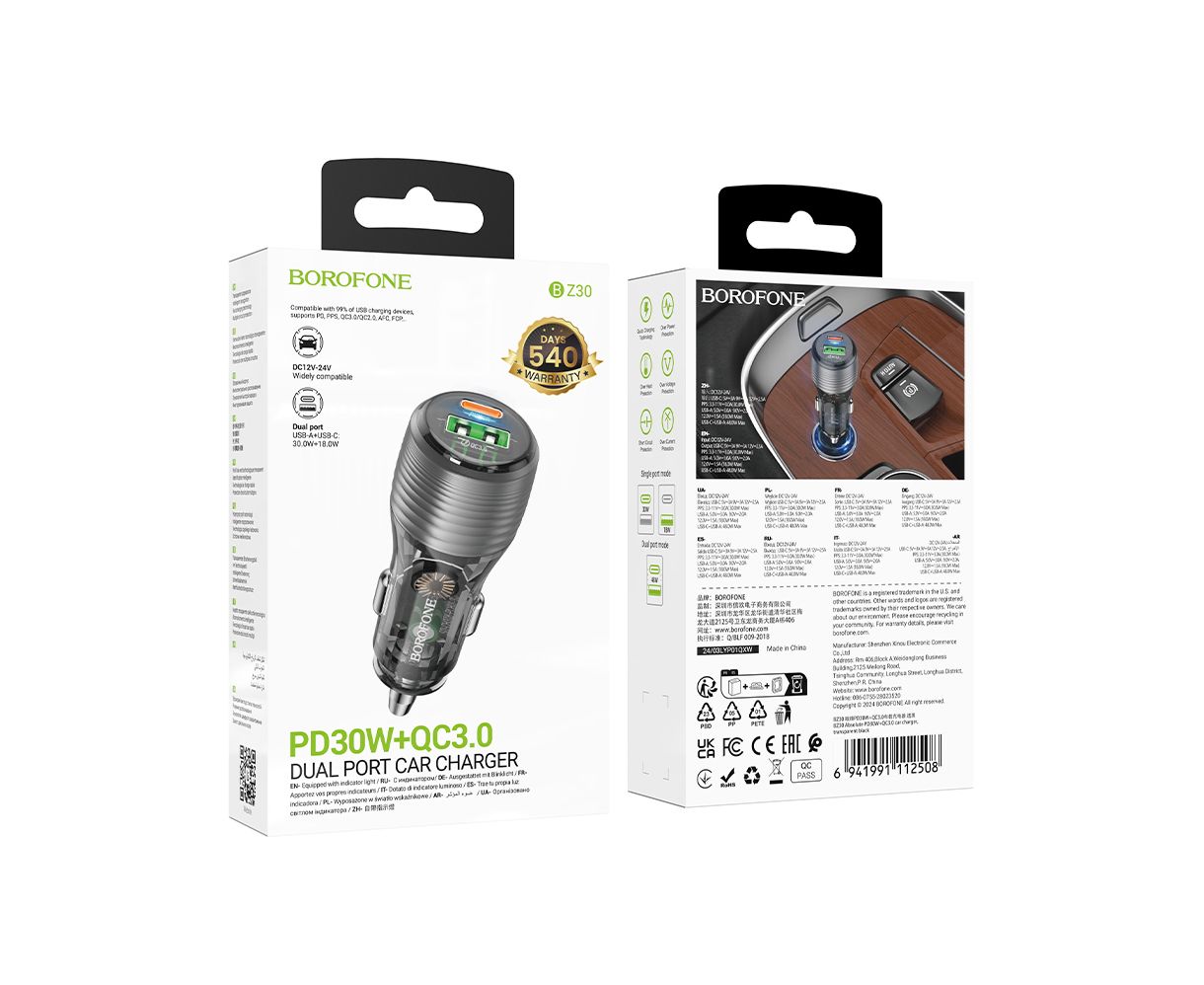 АЗУ BOROFONE BZ30 Absolute PD30W+QC3.0 car charger (черный)