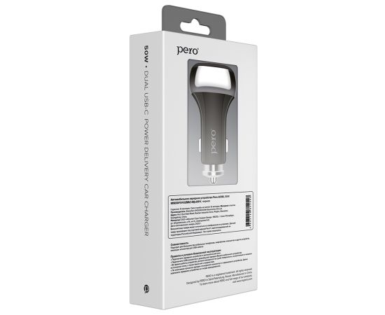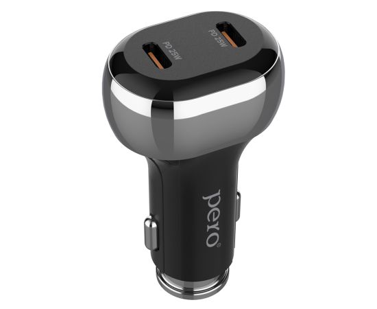 Автомобильное зарядное устройство PERO AC06 оснащено 2-мя USB-портами USB-С с функцией быстрой зарядки Power Delivery, каждый с мощностью 25Вт и максимальной силой тока до 3.4А. Суммарная мощность портов составляет 50Вт.
