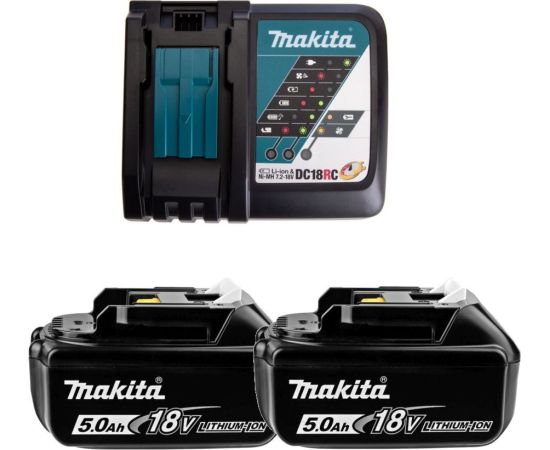 Набор питания PowerPack Makita 19Ll74-5 состоит из быстро зарядного устройства Makita DC18RC, двух аккумуляторов Makita BL1850B с индикацией уровня заряда.