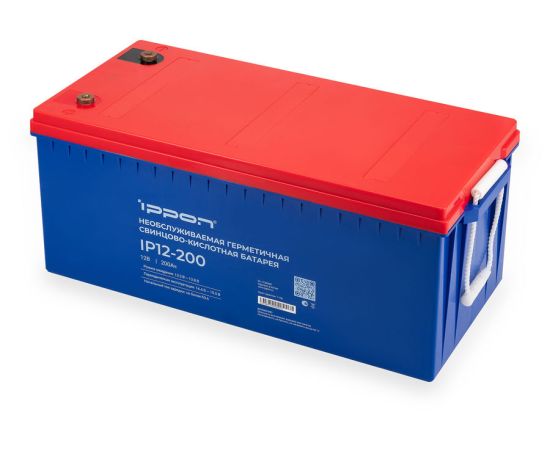 Герметичная необслуживаемая кислотно-свинцовая батарея напряжением 12В и емкостью 200Ач для систем бесперебойного питания.