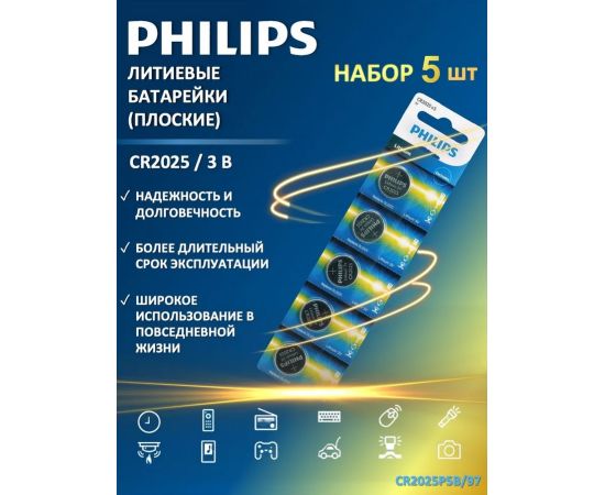 Батарейка плоская CR2025 литиевая 5 в блистере