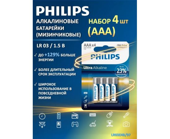 Батарейка Ultra Alkaline щелочная 4АAA в блистере