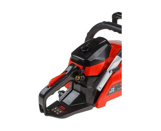 Удобно расположенные топливный насос (праймер) и винт натяжения цепи; хорошо сбалансированная конструкция; полноценный комплекс безопасности – инерционный тормоз, уловитель цепи, защита от случайного включения; антивибрационная система; автоматическая подача масла на трущиеся элементы пильной части.