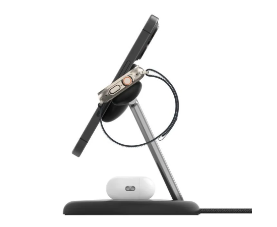 Следующее поколение нашей популярной зарядной станции 3-в-1 совместимо с Qi2. Магнитная панель iPhone поворачивается, а подставка становится меньше.