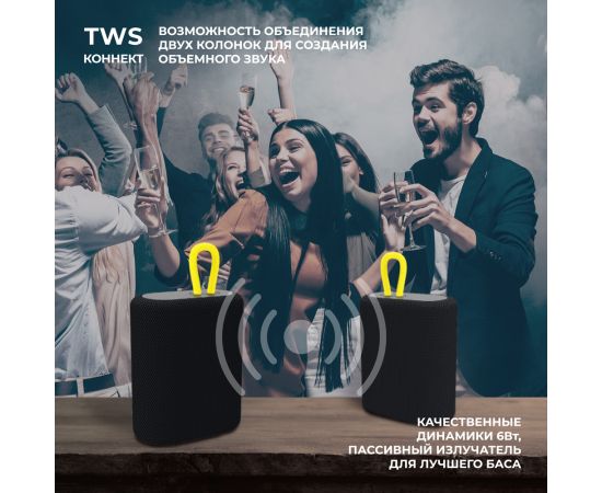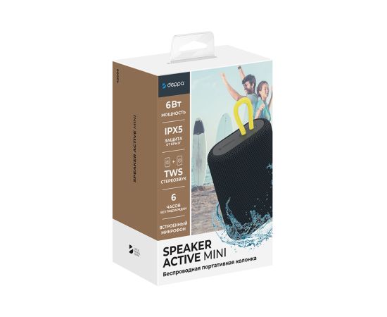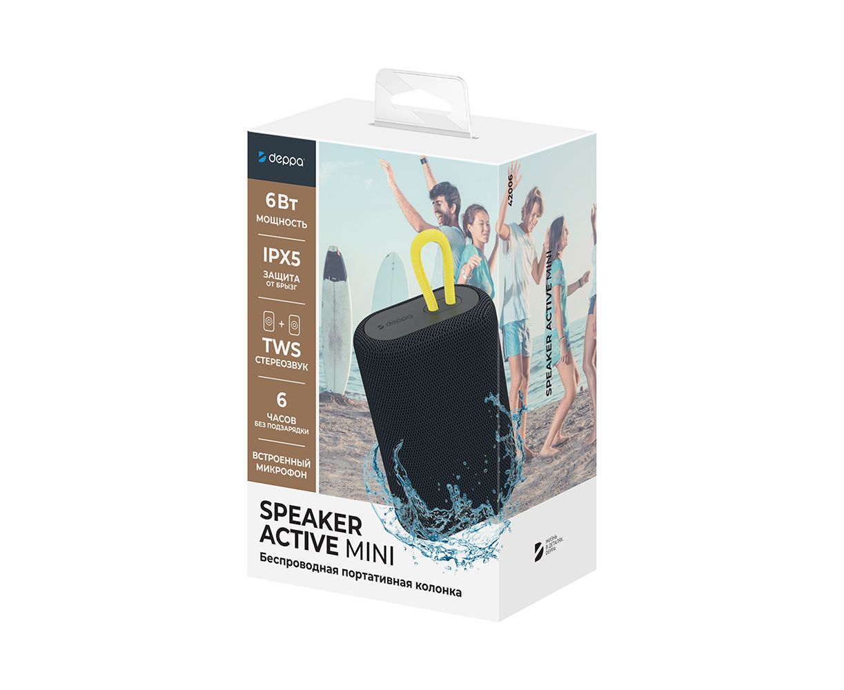 Беспроводная портативная колонка Speaker Active Mini, 2х6Вт, BT5.2, 1200 мАч, черный, Deppa, 42006