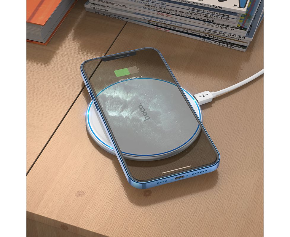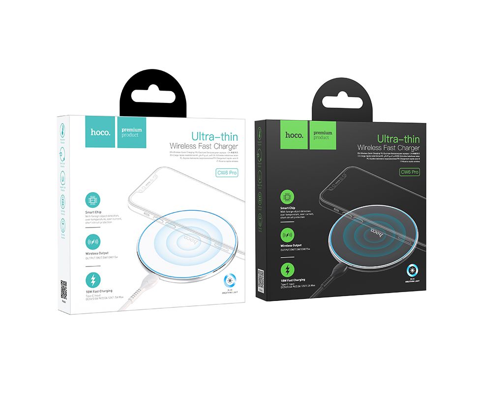 Новая мощная беспроводная зарядка для телефона Hoco CW6 Pro версия. Быстрая беспроводная зарядка выдает мощность в 15W, что позволяет оперативно зарядить ваш смартфон, часы и все что имеет функцию беспроводной зарядки. Беспроводное зарядное устройство имеет ультратонкий дизайн в диаметре всего 100мм и шириной в 8мм. В комплекте с блоком зарядки идет кабель разъемом USB Type C 1м.