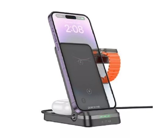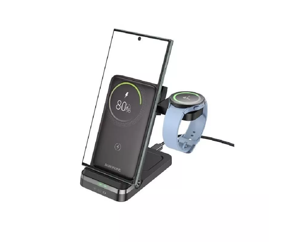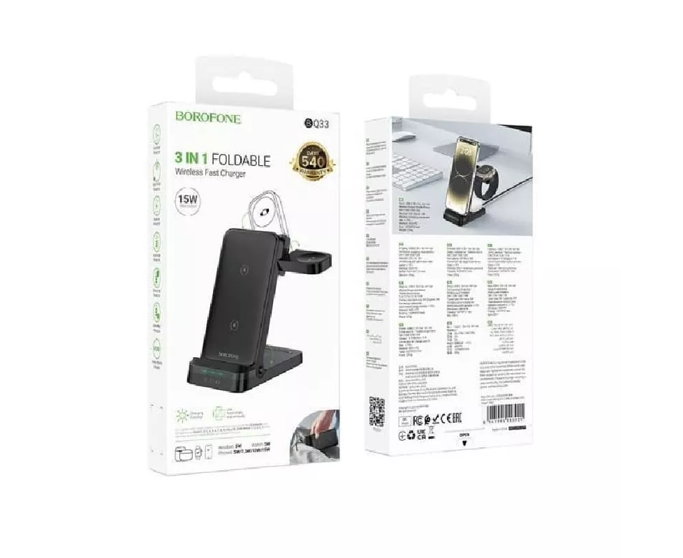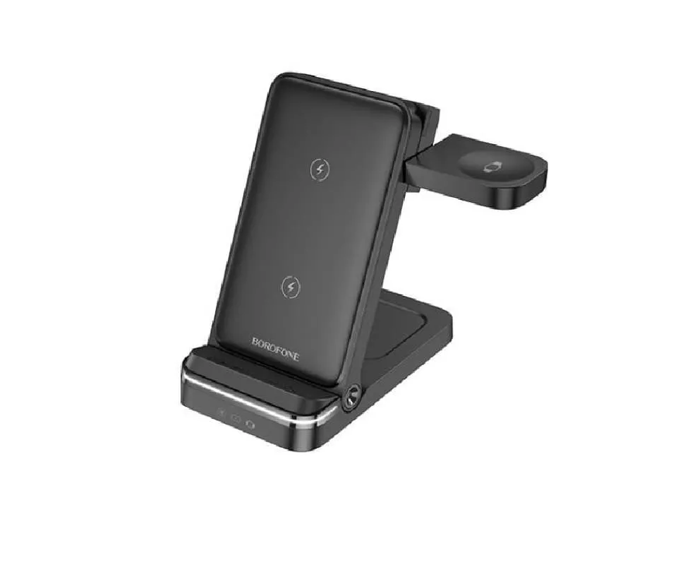 Беспроводное ЗУ BOROFONE BQ33 Clever folding 3-in-1 vertical wireless fast charger (черный)