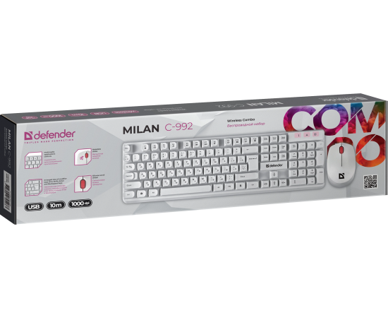 Клавиатура + мышь DEFENDER Milan C-992, 45994 (беспроводной набор) белый