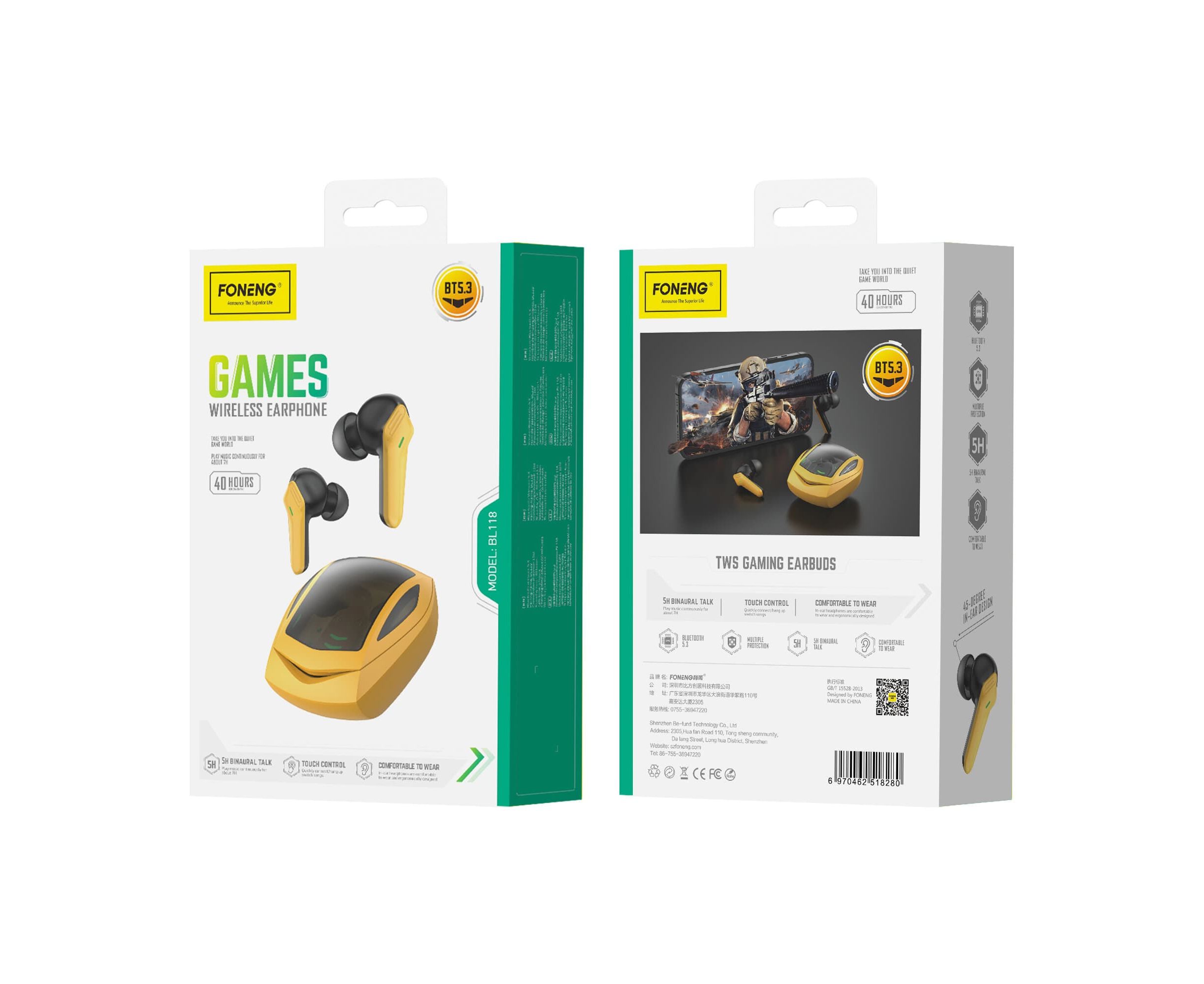 Беспроводные Bluetooth-наушники Foneng BL118 MVP Gaming (Yellow)