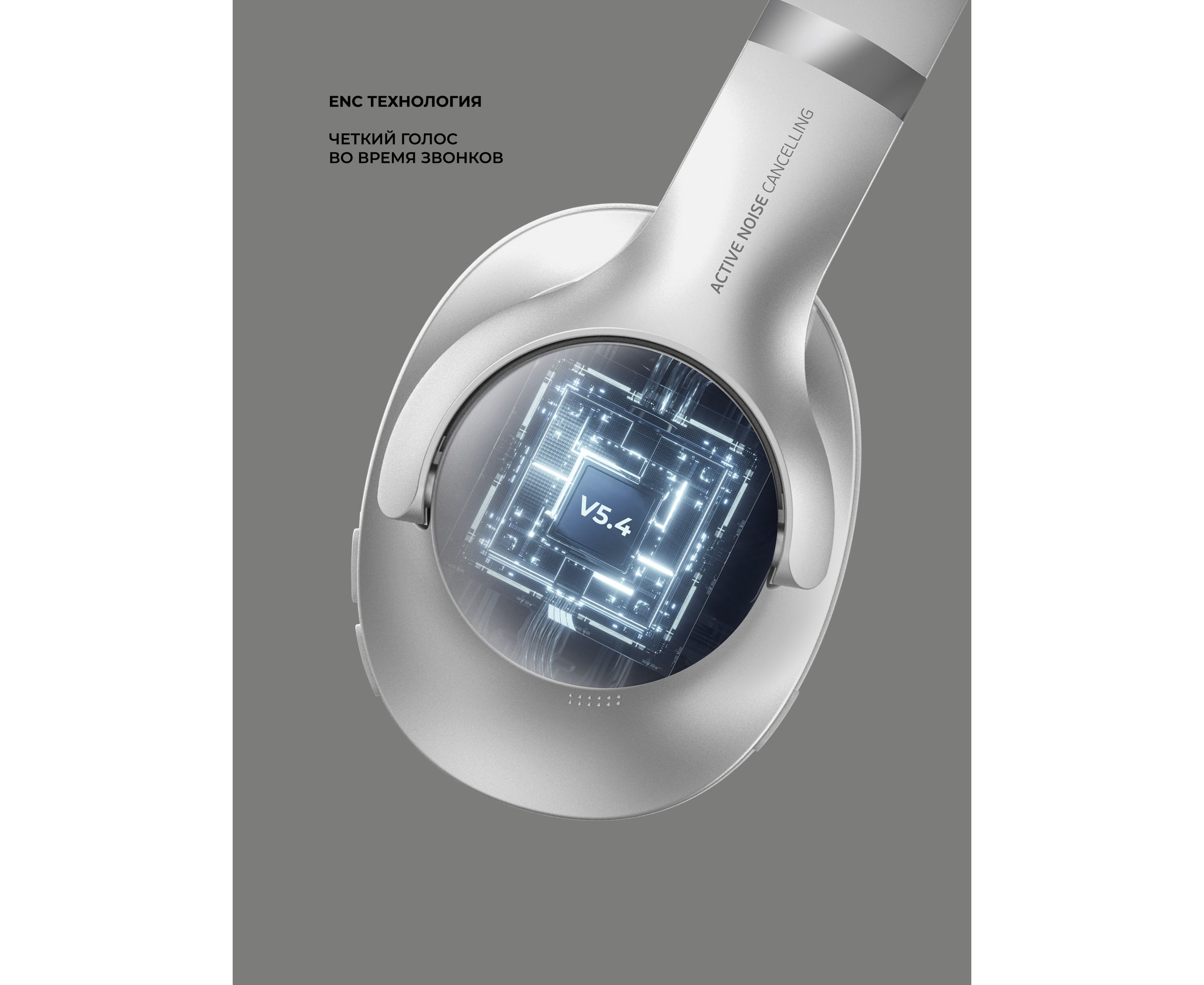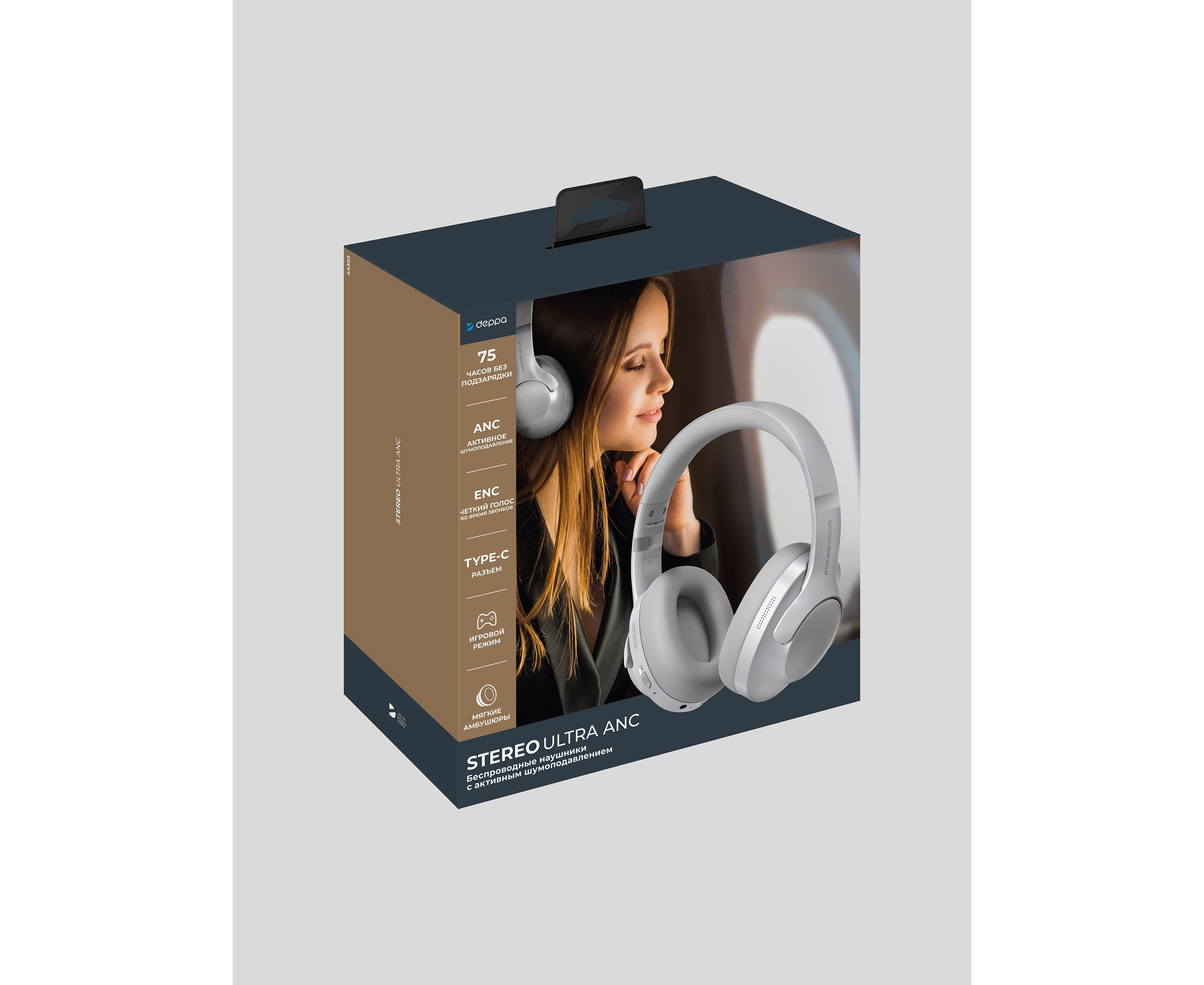 Беспроводные накладные наушники Stereo Ultra ANC, BT 5.4, ANC/ENC, 500мАч, серебристый, Deppa