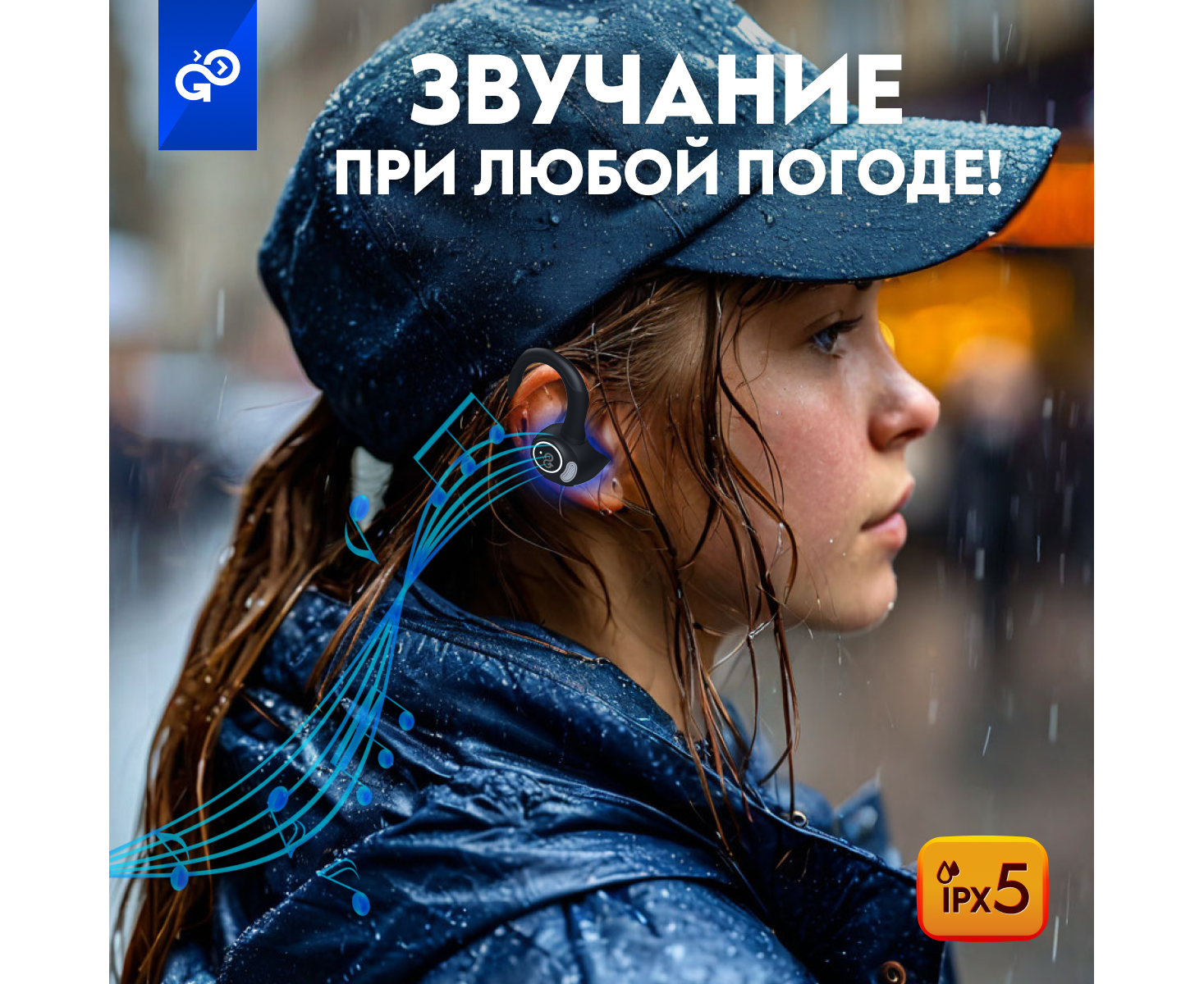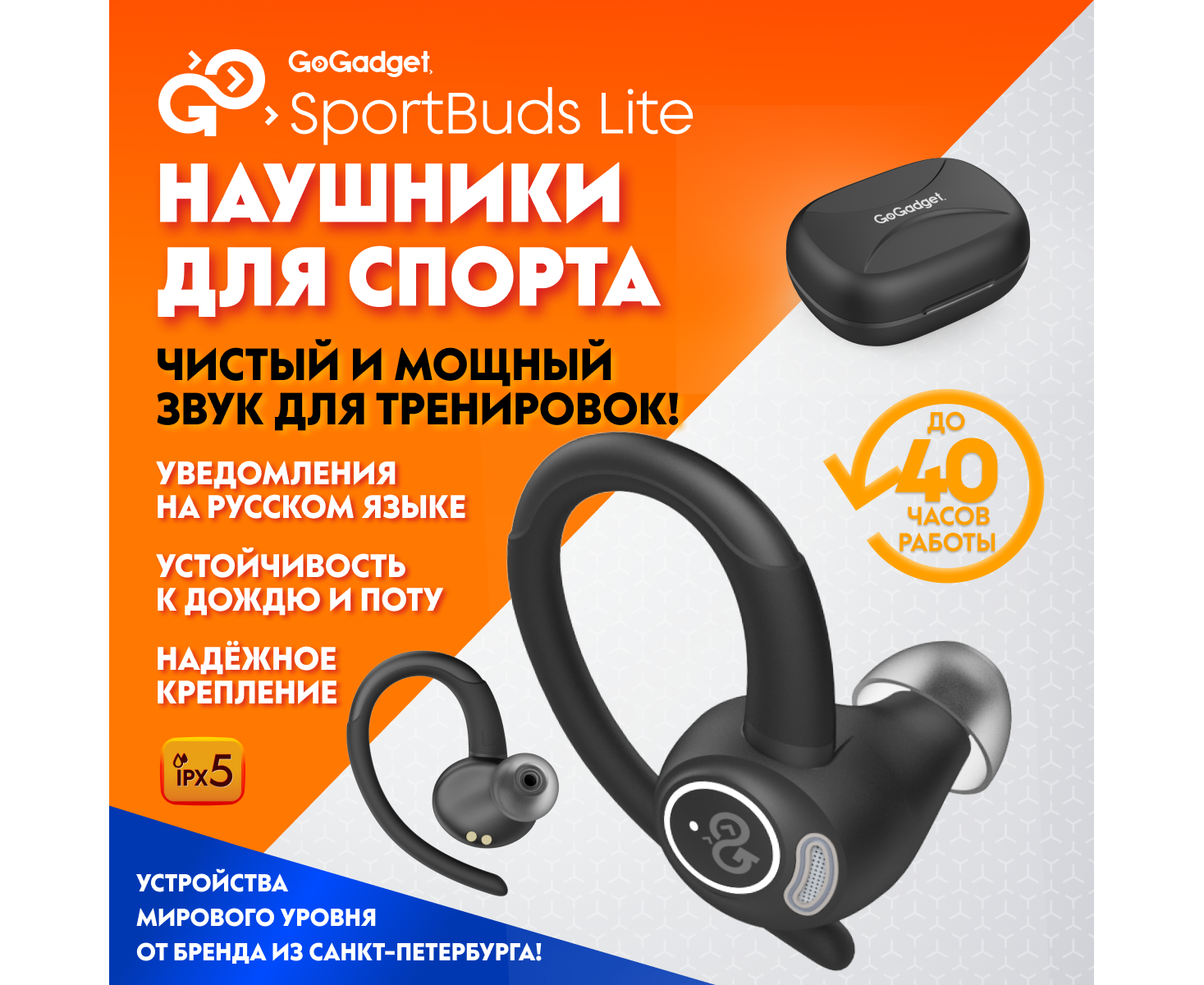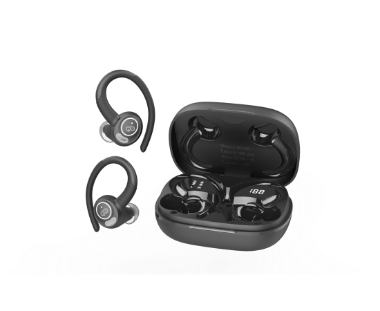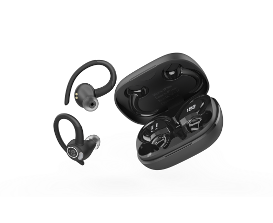 Беспроводные наушники GoGadget SportBuds Lite, вакуумные, заушины, EDR, 2 микр., 40+400 мАч, до 40 ч, IPX5, c дисплеем, ЧЕРНЫЙ