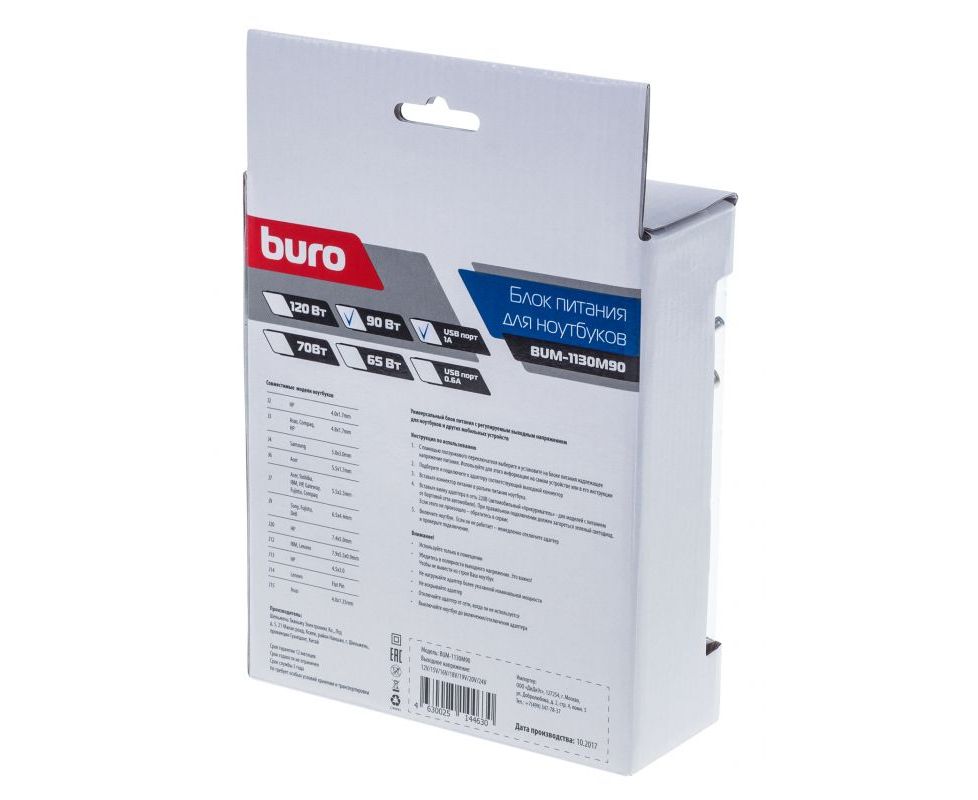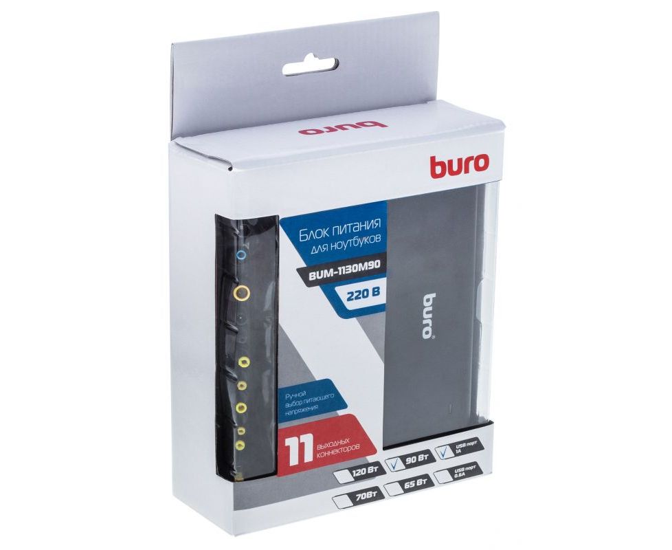 БП Buro BUM-1130M90 ручной 90W 12V-20V 11-connectors 3.75A 1xUSB 1A от бытовой электросети LED индикатор