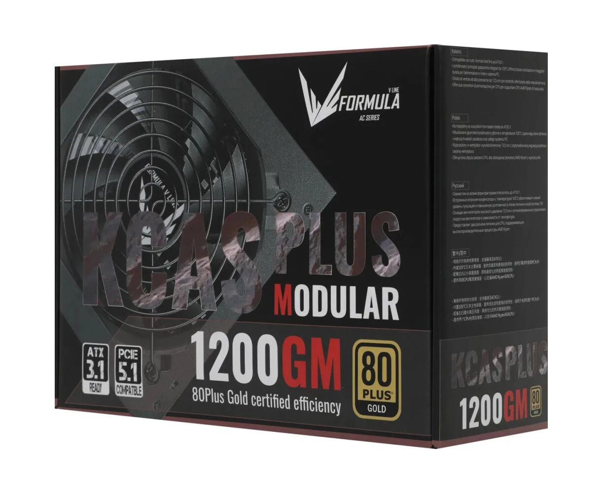 Блок питания Formula V Line KCAS Plus 1200GM, 1200W, ATX3.1/PCIe5.1, APFC, 80+ Gold, 14cm Fan, Full Modular