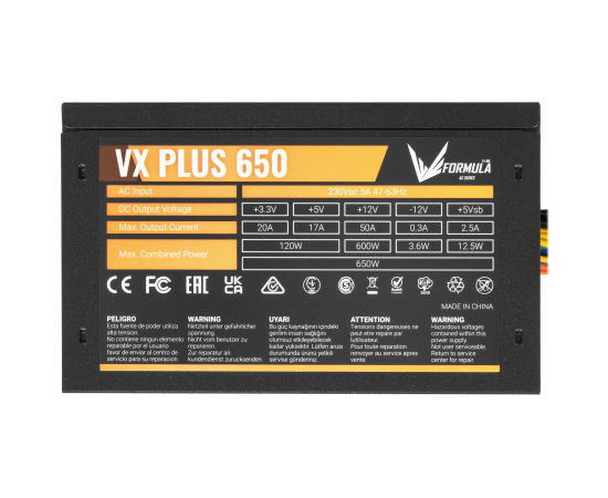 Блок питания Formula VX Plus 650, 650W, Ret, ATX v2.3, 20+4P, 4+4P, 2xPCIe 6+2P, 4xSATA, 3xPATA, 1xFDD, 12cm