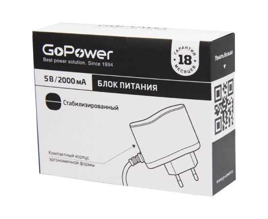 Блок питания GoPower 2.0A 5V 5,5x2,5/12мм импульсный (1/100)