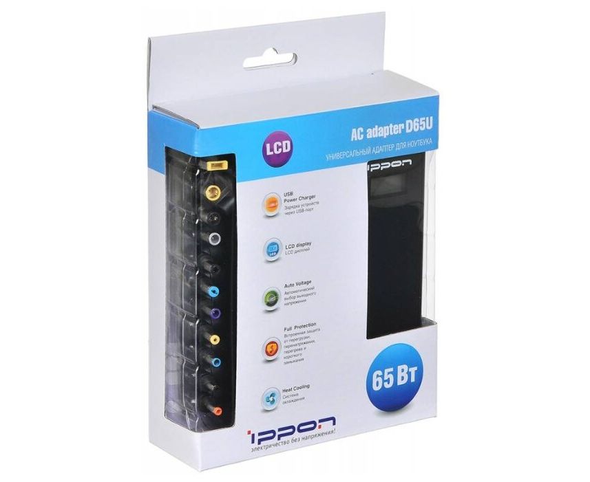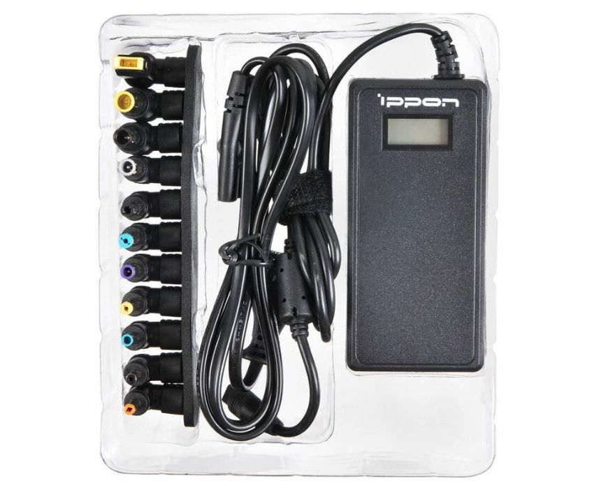 Блок питания Ippon (D65U) автоматический 65W 15V-19.5V 11-connectors 1.5A 1xUSB 2.1A от бытовой электросети LСD индикатор