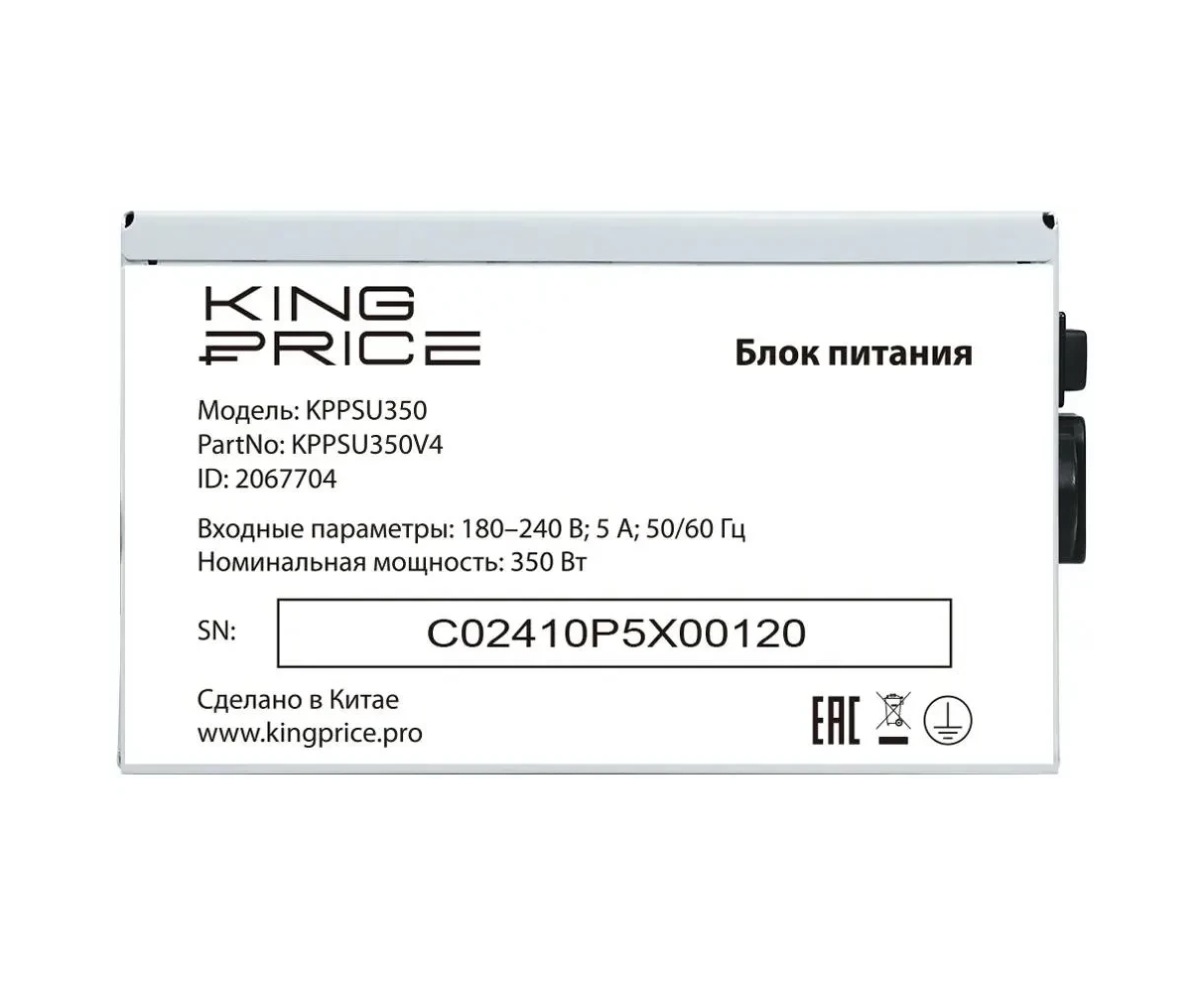 Блок питания KingPrice KPPSU350 (KPPSU350V4) (20+4pin) 120mm fan 2xSATA ATX 350W