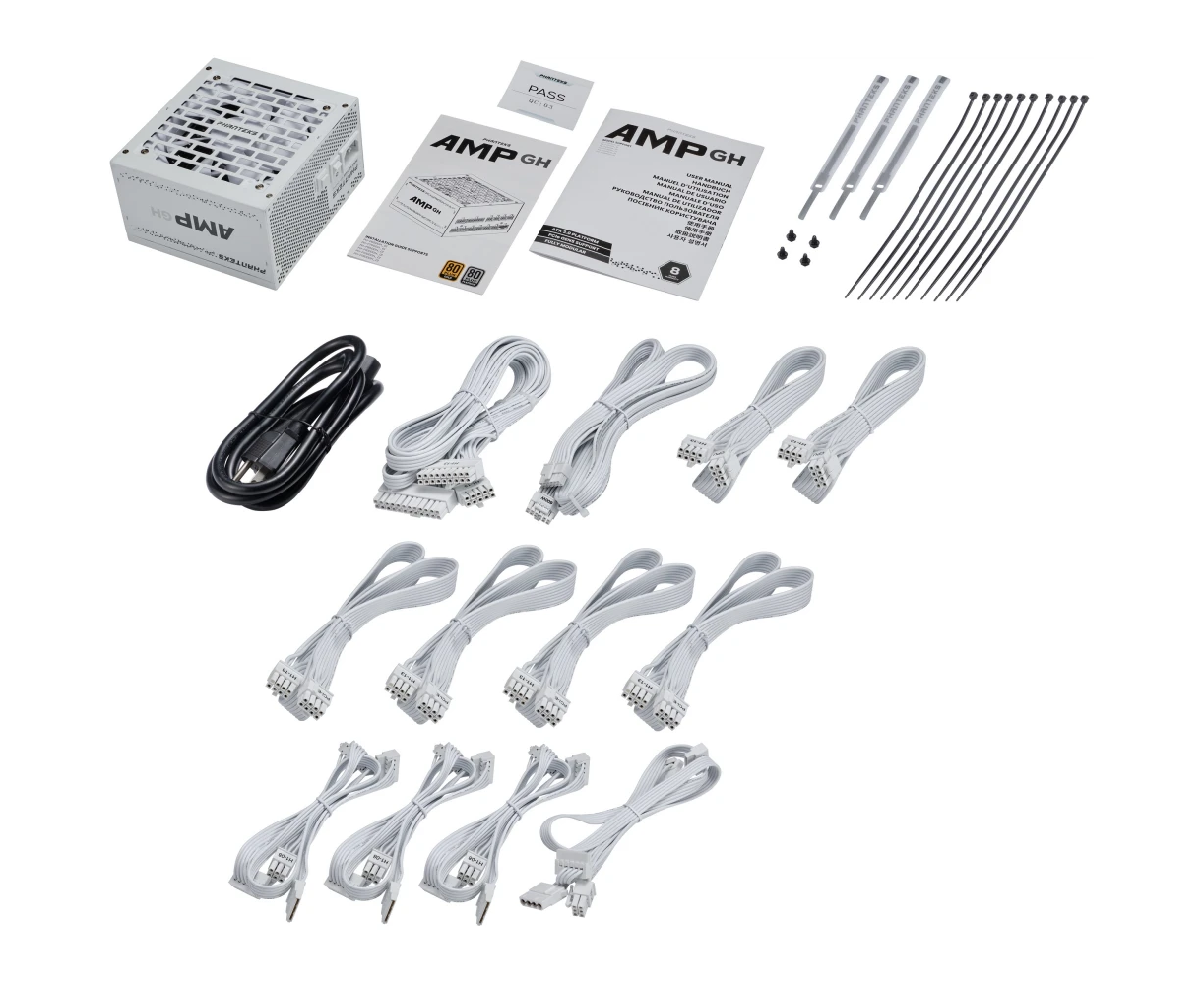 Блок питания PHANTEKS AMP GH 850W (PH-P850GH_WT01) (80 Plus Gold, ATX 3.1, PCIe 5.1, APFC, 120mm Fan, Fully Modular, White)