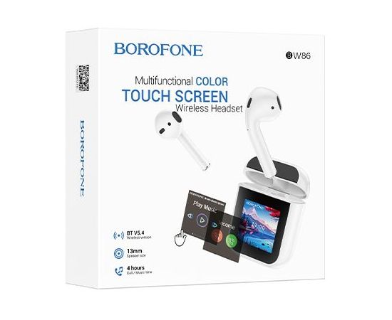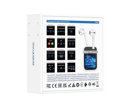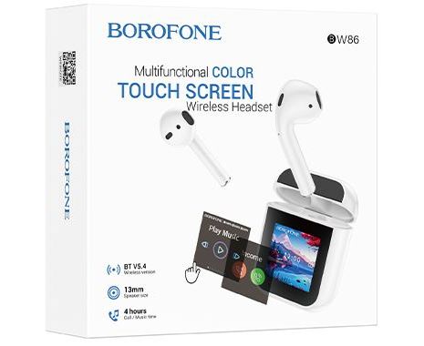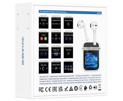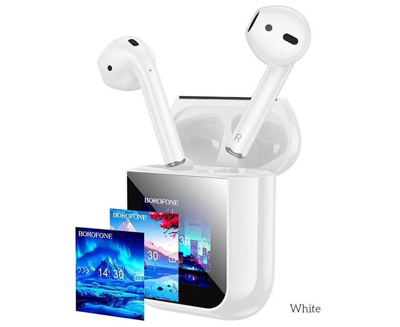 Блютуз гарнитура TWS Borofone BW86/ сенсорный экран/ Белый