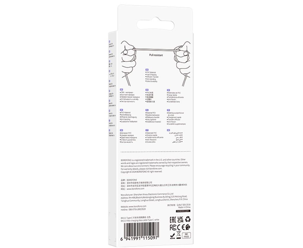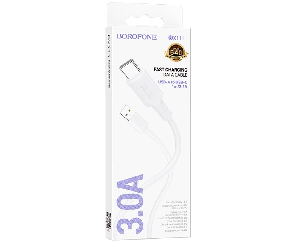 Кабель BOROFONE BX111/ USB Type-C/ 1m/ 3A/ Белый